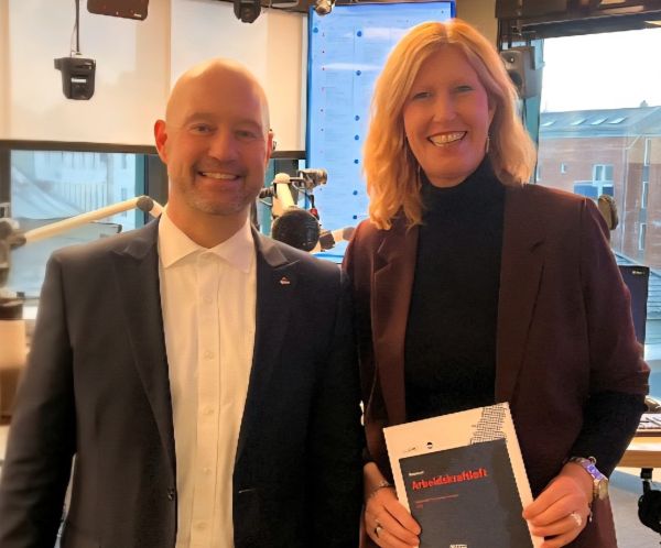 På bildet direktør Anders Anundsen i Nav Vestfold og Telemark og regiondirektør Kristin Saga i NHO Vestfold og Telemark.
