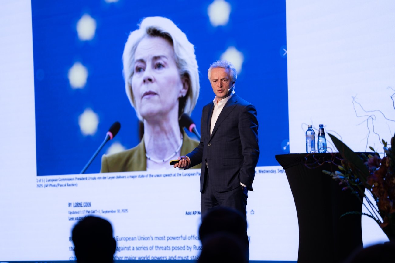 Han beskrev en verden der flere store endringer skjer samtidig: USAs endrede globale rolle, krigen i Ukraina, Kinas voksende økonomiske og teknologiske tyngde, og et Europa som må ta større ansvar for egen sikkerhet og konkurransekraft.